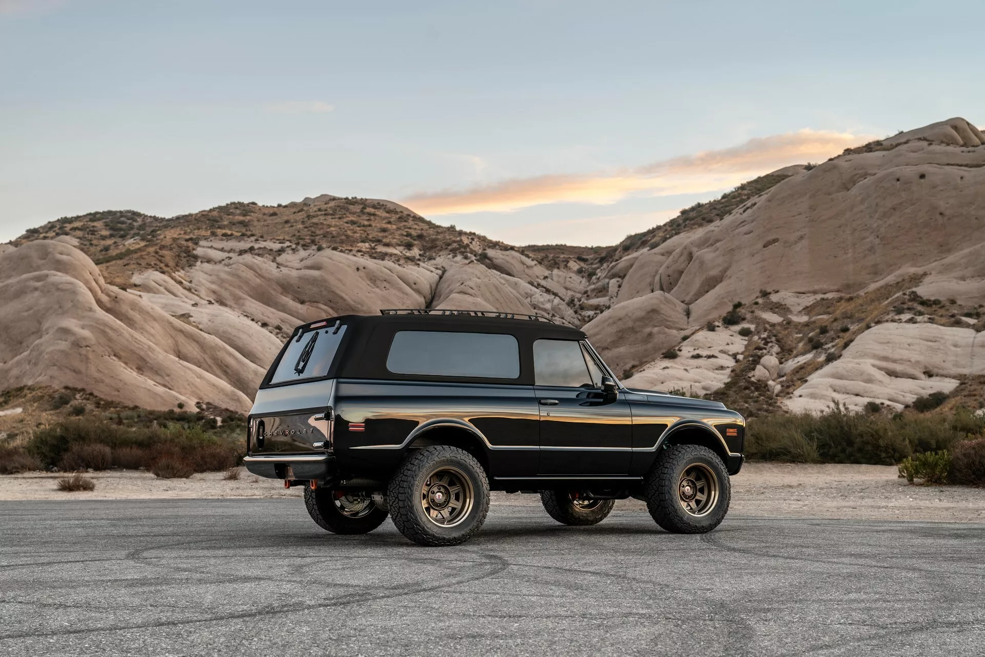 Chevy K5 Blazer นี้ได้รับการออกแบบและปรับแต่งใหม่ให้มีรูปลักษณ์ที่ทันสมัย แต่ยังคงความดิบและแข็งแกร่งของดีไซน์เดิมไว้ ส่วนหน้ารถมีการปรับให้ดูโฉบเฉี่ยวมากขึ้น รวมถึงการเพิ่มไฟหน้า LED ที่เข้ากับลักษณะของรถยุคใหม่ โดยรวมแล้ว Blazer คันนี้ยังคงเสน่ห์ของยุค 70 แต่ผสมผสานกับความทันสมัยอย่างลงตัว