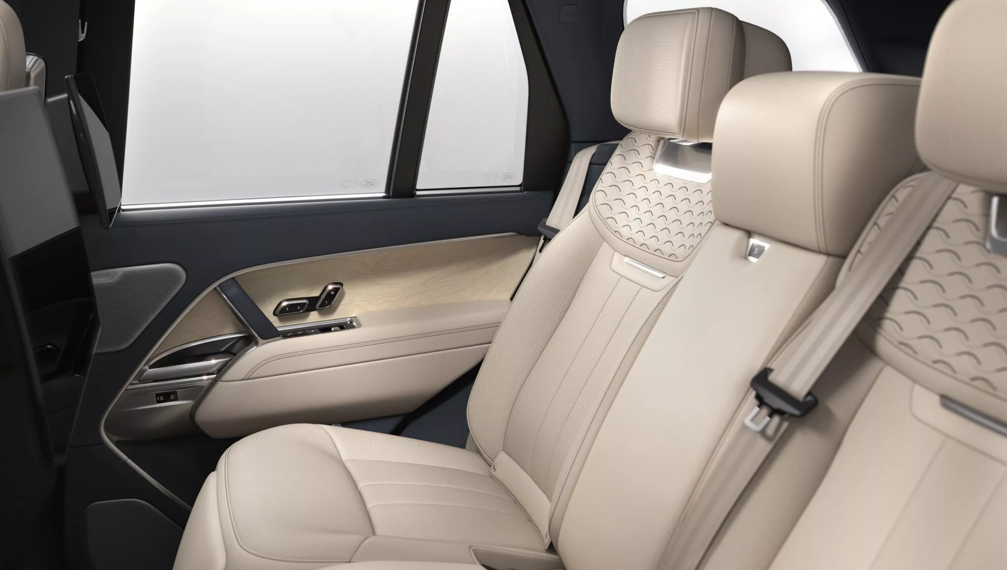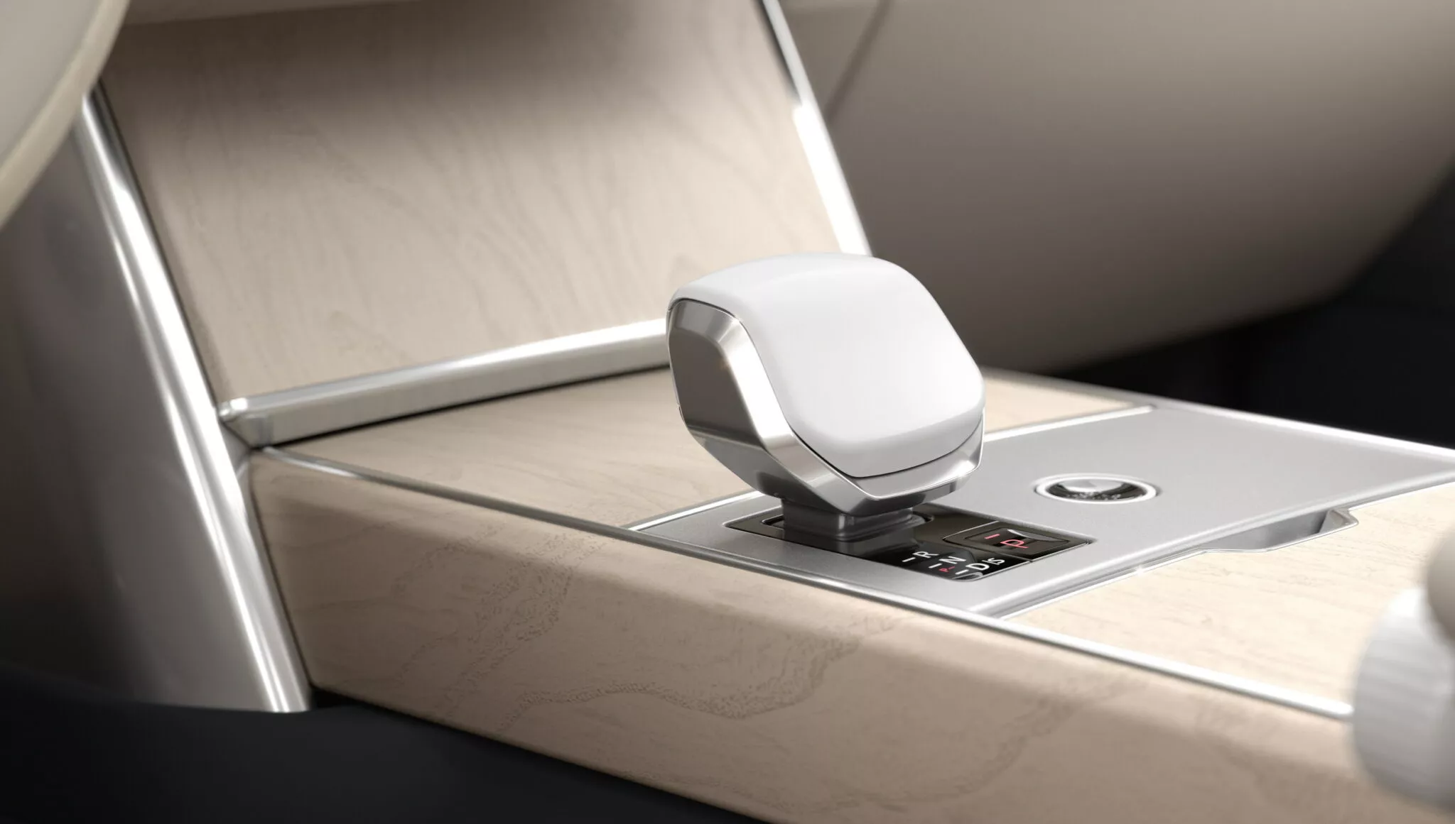 ภายใน เบาะหนัง Perlino พร้อมพวงมาลัยไม้ Natural Cream Ash Burr และคอนโทรลเซรามิกสีขาว